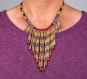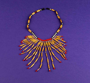 Ein echter Hingucker für den Hals: Aus vielen bunten Perlen und dünnen Bambusstäbchen besteht diese fächerähnliche Kette, die langweilige Pullover oder tiefe Ausschnitte aufpeppt. Hergestellt wurden sie von T´boli-Frauen in Mindanao, der zweitgrößten Insel der Philippinen, die mit immer neuen Ideen einfachen Schmuck gestalten - aus Materialien, die sie rund um ihre Dörfer finden. Doch der Druck auf die Ureinwohner, ihr Land und ihre Traditionen aufzugeben, wächst. Der Steyler Missionar Georg Ziselsberger unterstützt die T´boli-Familien.