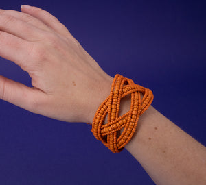 Jedes Armband ist ein Unikat und in limitierter Auflage in den Farben Schwarz und Orange bei uns zu erwerben.