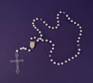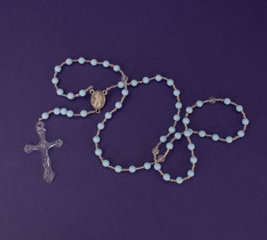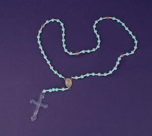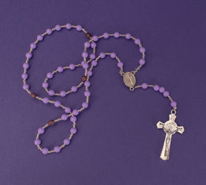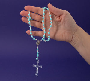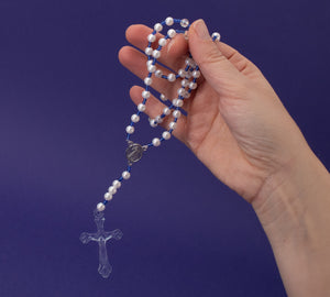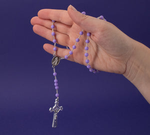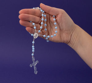 Mit dem Kauf eines Rosenkranzes – oder einer kleinen zusätzlichen Spende – unterstützen Sie direkt und zu 100% diese starke Gemeinschaft und geben den Mädchen und Frauen die Möglichkeit, ihren Weg in ein Leben in Sicherheit und Eigenständigkeit weiterzugehen. Jeder Rosenkranz ist ein handgearbeitetes Unikat. Verfügbare Farben: Violett, Himmelblau, Weiß-Blau, Lachs und Türkis.