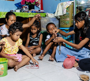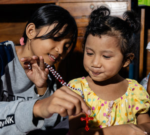 Im Frauenhaus der Steyler Schwestern (SSpS) in Labuan Bajo, im Westen der Insel Flores in Indonesien, fertigen die Bewohnerinnen Rosenkränze in fröhlichen, positiven Farben. Der Verkauf auf dem Markt bringt ihnen ein kleines Einkommen, das vollständig in die Gemeinschaftskasse fließt.