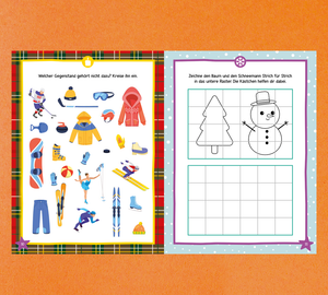 Finde den Weg durch das Geschenke-Labyrinth, suche Fehler in Schneeszenen oder entdecke weihnachtliche Überraschungen in vielen Kreuzworträtseln.