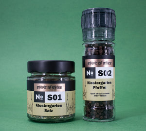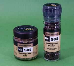 Umfang: je 1 Glas Klostergarten-Salz und Klostergarten-Pfeffer zum Vorteilspreis.